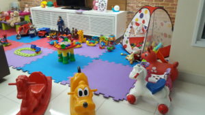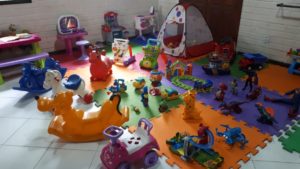 Um mundo de brinquedinhos para os bebês. Um lugar destinado às crianças de 0 a 3 anos com muitos brinquedinhos e 2 monitoras para que as mamães curtam bastante a festa.